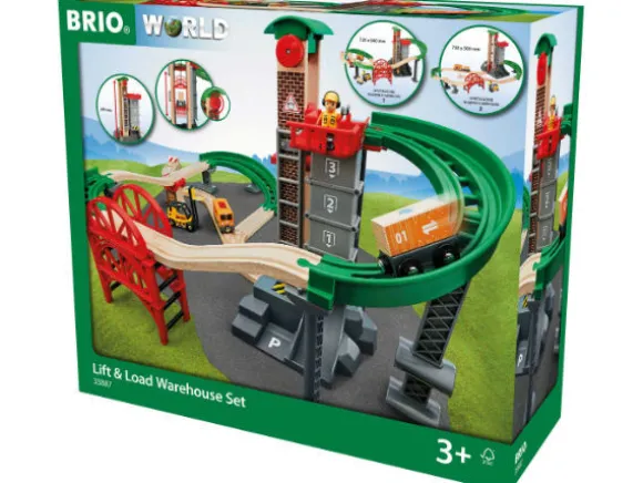 Ylöspäin rakentaminen nostaa junaleikit aivan uusiin ulottuvuuksiin. Tämä setti sisältää korkean varaston, pinottavan sillan, kurveja ja kaltevia ratapaloja. Nosta ensin vaunu hissillä ylös, pura lasti ja katso, kuinka vaunu kiitää alas. Sinä päätät mitä rakennat, mutta muista rakentaa se korkealle!