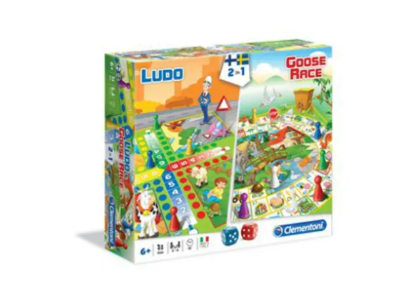 Clementonin kätevässä pelipakkauksessa on kaksi hauskaa peliä: Ludo ja Goose race. Pakkaus sisältää pelivälineet ja pelisäännöt suomeksi ja ruotsiksi.