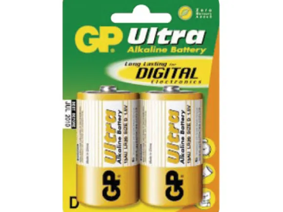 2 kpl pakkaus D -perusparistoja. GP Ultra Alkaline on Alkaliparisto, joka on tarkoitettu erityisesti tuotteisiin, jotka vaativat tavallista suurempaa virtamäärää esim. kannettavat CD-soittimet, taskulamput jne. Noin 20 % pidempi käyttöikä verrattuna tavallisiin alkaliparistoihin.
