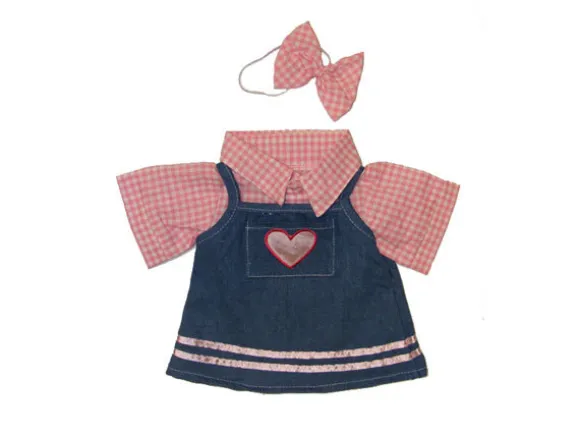 Rusetti päähän ja farkkumekko ylle! Tällä asukokonaisuudella loihdit nallestasi söpön ja siistin leikkikaverin. Osta kerralla enemmän vaatteita Nallekoneen 40-senttiselle pehmolelullesi, niin voit vaihdella niitä tarpeen ja leikkien mukaan.