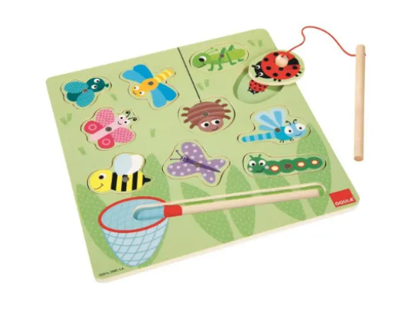 Magneettinen palapeli, jota koristavat iloisen väriset ötökät.