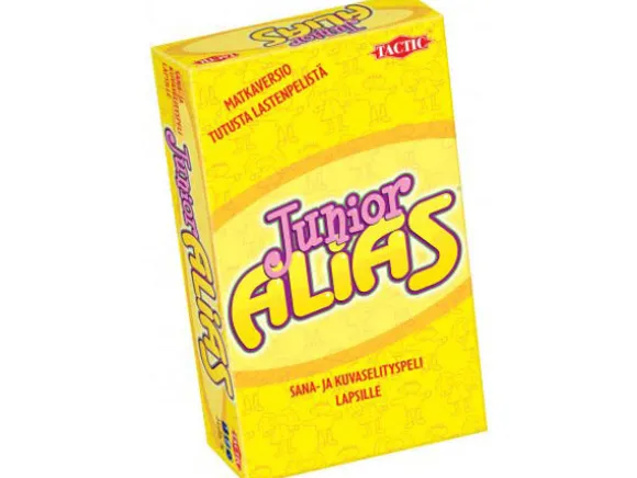 Junior Alias on hauska sana- ja kuvaselityspeli, jossa sinun täytyy arvata, mitä kuvaa/sanaa pelikumppanisi yrittää sinulle selittää. Pelikumppani antaa korttien kuviin liittyviä vihjeitä. Sinun tulee arvata mahdollisimman monta kuvaa oikein ennenkuin tiimalasin hiekka valuu loppuun. Tämä hauska matkaversio kulkee mukanasi niin kesämökille kuin rantaretkellekin!
