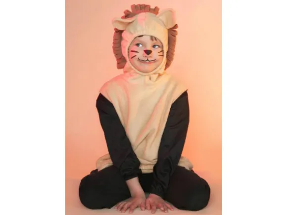 Leijonana olet älykäs petoeläin, joka tarkkailee mitä ympäristössä tapahtuu ja nauttii leppoisista hetkistä. Leijona-asussa voit käyttää mielikuvitustasi myös ulkoleikeissä, koska materiaalina on käytetty pestävää ja kevyttä fleeceä. Asu on hupullinen, hihaton ja puolipitkä kokoasu, jonka häntä osuu maahan asti. Asu soveltuu 3-8-vuotiaille.