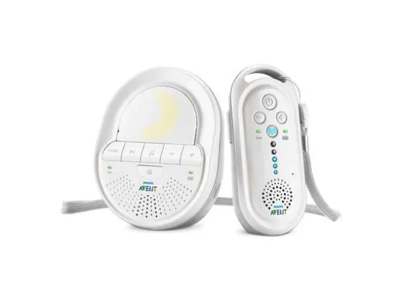 Äänenvoimakkuuden merkkivalot ilmoittavat, kun lapsi ääntelee. Jos laite on kantoalueen ulkopuolella tai virta on vähissä, alkaa vanhemman yksikkö hälyttämään. Voit myös puhua lapsellesi muista kodin huoneista vain napin painalluksella. Itkuhälyttimen käyttöalue on sisällä n. 50 metriä ja ulkona jopa 330 metriä. Tuotteessa on myös yövalo ja kehtolauluja.