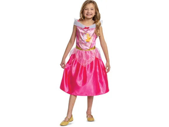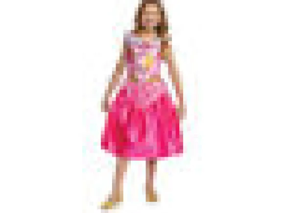 Muuta itsesi Auroraksi ja anna Satiinipintaisen pinkin kankaan ja Prinsessa Ruususen printtikuvan tehdä sinut todellakin säkenöiväksi. Mekko sopii 4-6 vuotiaille.