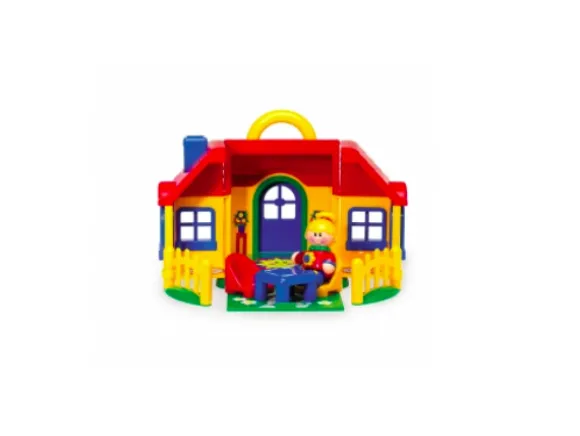 Tämä suloinen talo ja sen asukki sopivat hyvin lapsen ensimmäiseksi kotileikkisetiksi. Mukana tulee myös kalusteita.