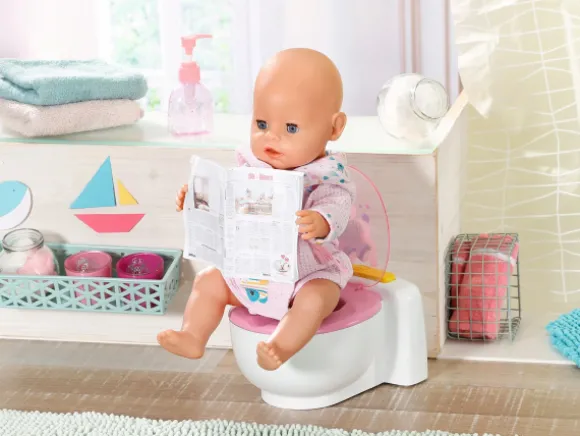 Hauska vessanpönttö Baby Born -nukelle. Pöntön pohjalla oleva Poo Poo -yllätys häviää, kun vedät vessan.