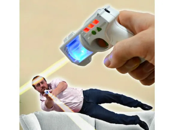 Aseessa on “ammuksia”. Niiden loputtua pelaajan pitää tehdä latausliike, jotta ase taas toimisi. Jotta jo huippuunsa viritetty tunnelma nousisi aivan kattoon asti, niin aseista kuuluu tietenkin mitä mahtavimmat laserase -äänet.