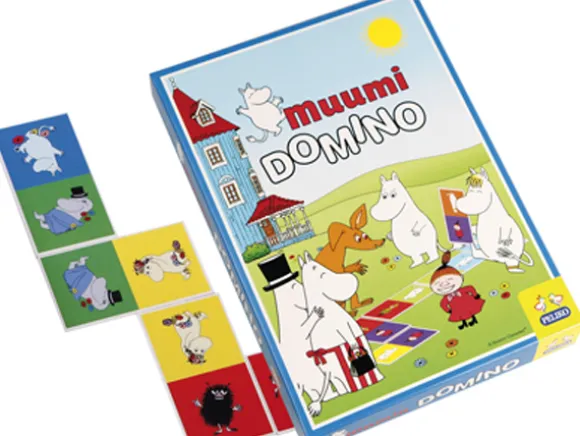 Hauskoissa Muumi-dominokorteissa seikkailevat tutut ystävät Muumilaaksosta. Perinteisen dominon lisäksi voit pelata jokeridominoa.
