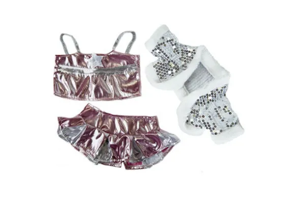 Todella hieno setti pehmolelulle, joka rakastaa esiintymistä ja tanssimista! Asukokonaisuuteen kuuluvat todella upea hame ja toppi sekä supermakea, kimalteleva takki.
